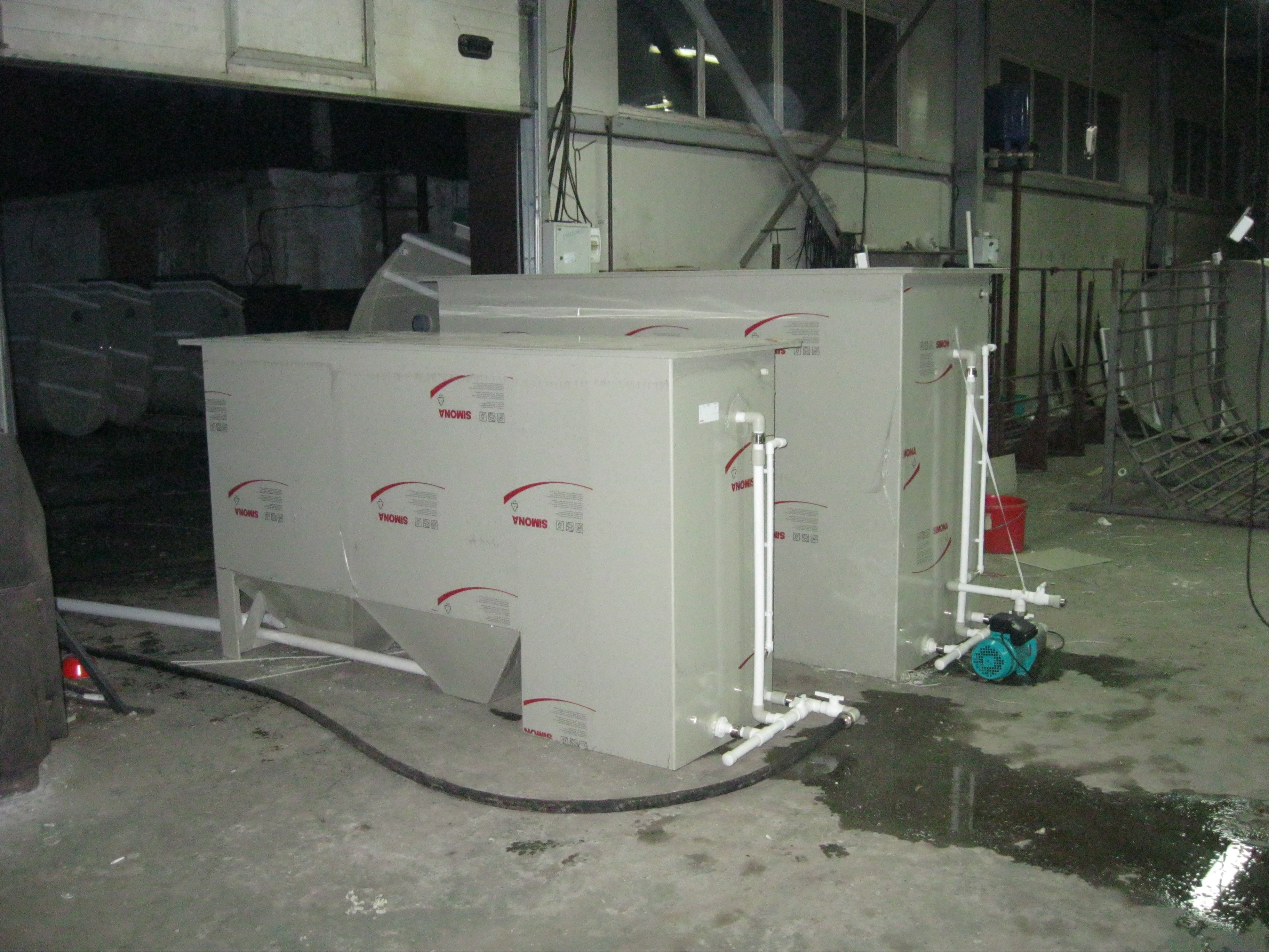 Из приямка они перекачиваются насосом в блок очистки, где сточные воды проходят напорный флотатор и фильтр со сменной песчаной загрузкой и дренажем из фильтровальной ткани.